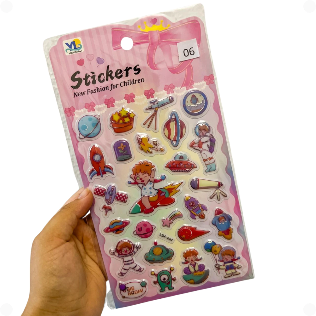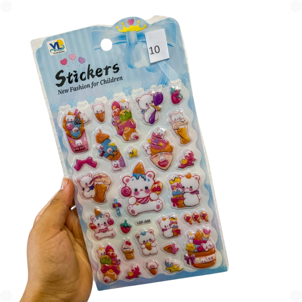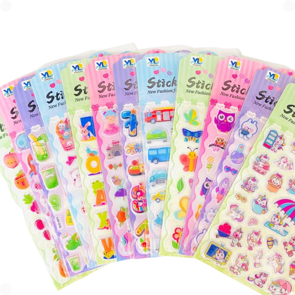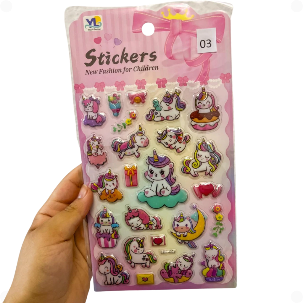 Cartela de Adesivos 3D em Alto Relevo – Temas Diversos: Animais, Dinossauros, Unicórnios e Mais!