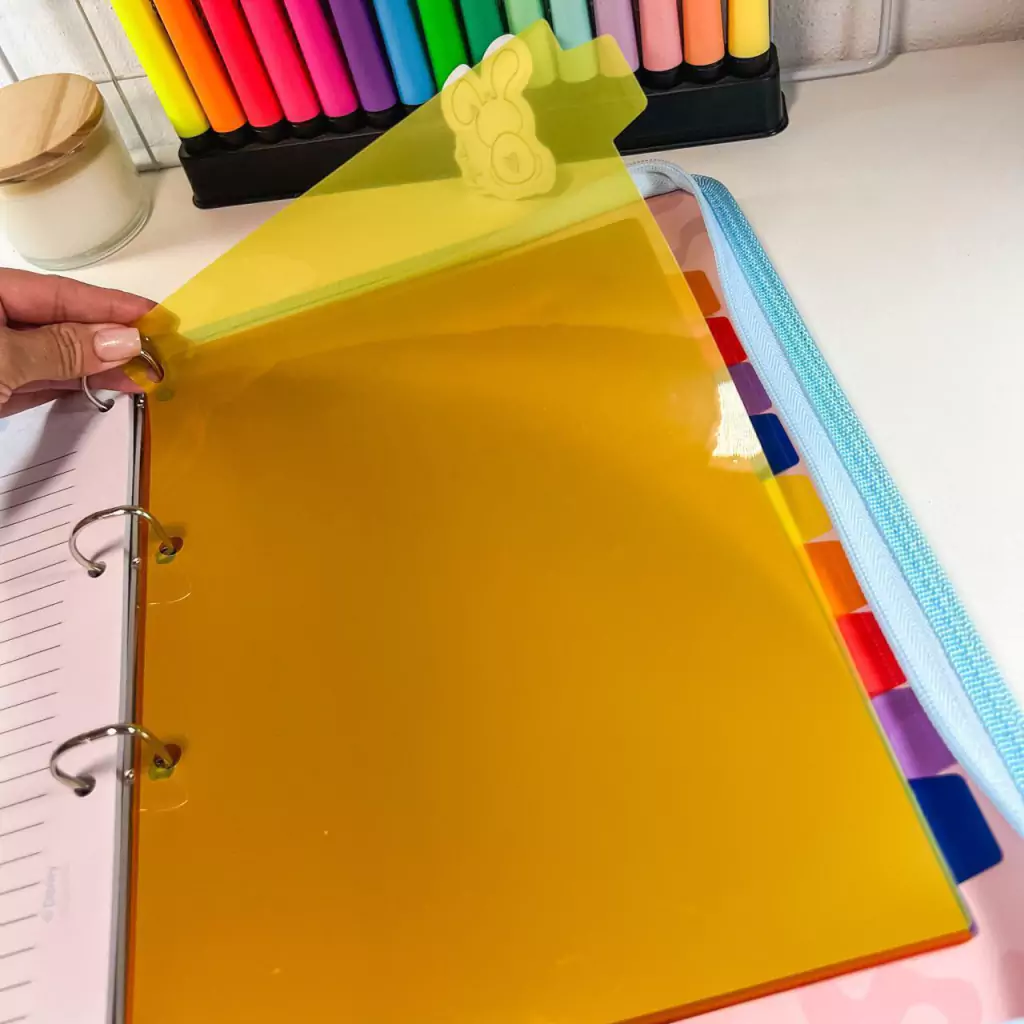 Um caderno argolado universitário com fechamento seguro em zíper, garantindo proteção para suas anotações e documentos.