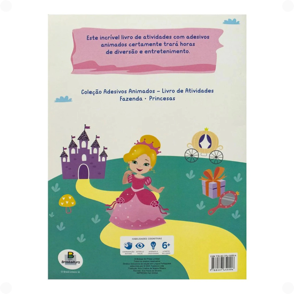 👑 Encante-se com o Livro de Atividades Princesas com Adesivos Animados! Perfeito para crianças a partir de 6 anos, ele estimula a criatividade, coordenação motora e percepção visual de forma divertida.